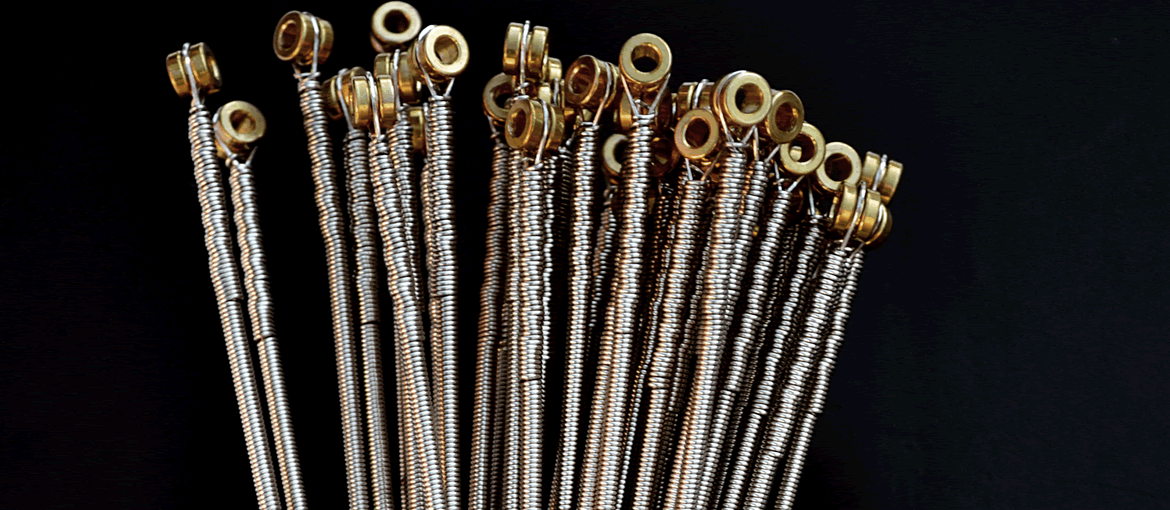 Entorchadas a mano con alambre de acero niquelado sobre un núcleo hexagonal. Su diseño especial le otorga flexibilidad, excelente volumen y brillo.